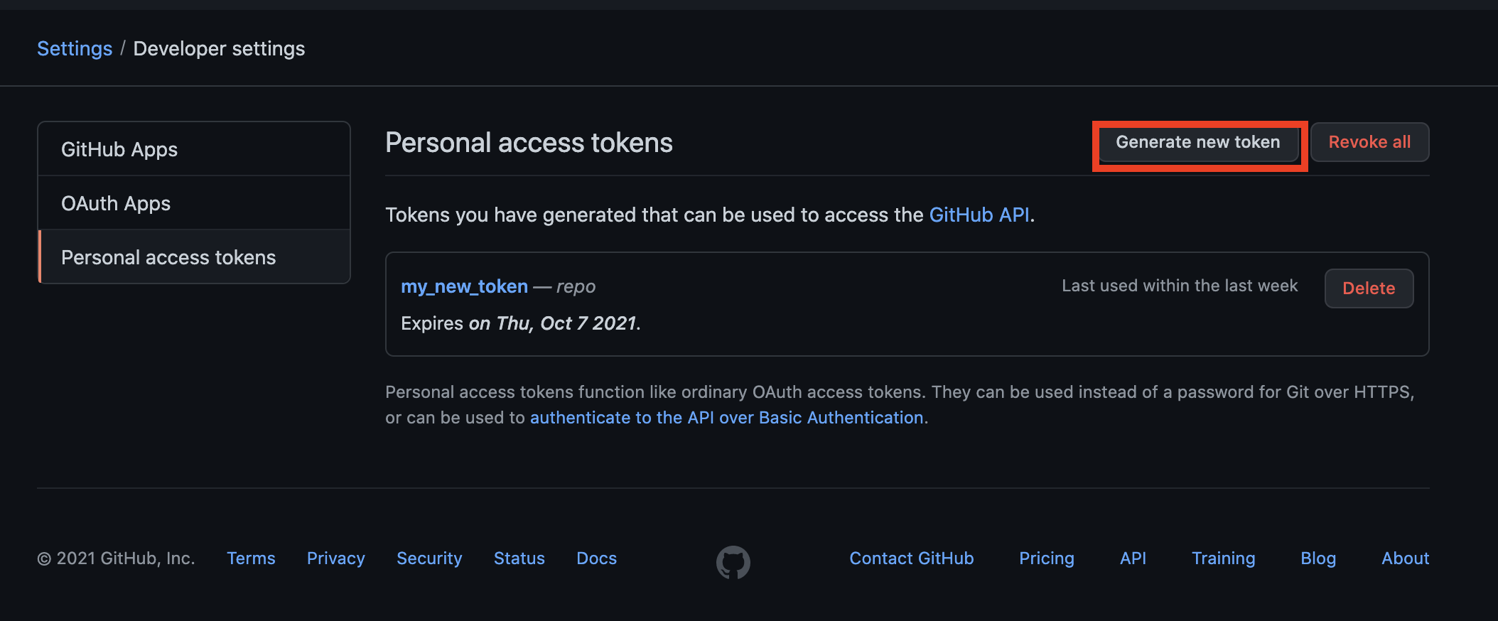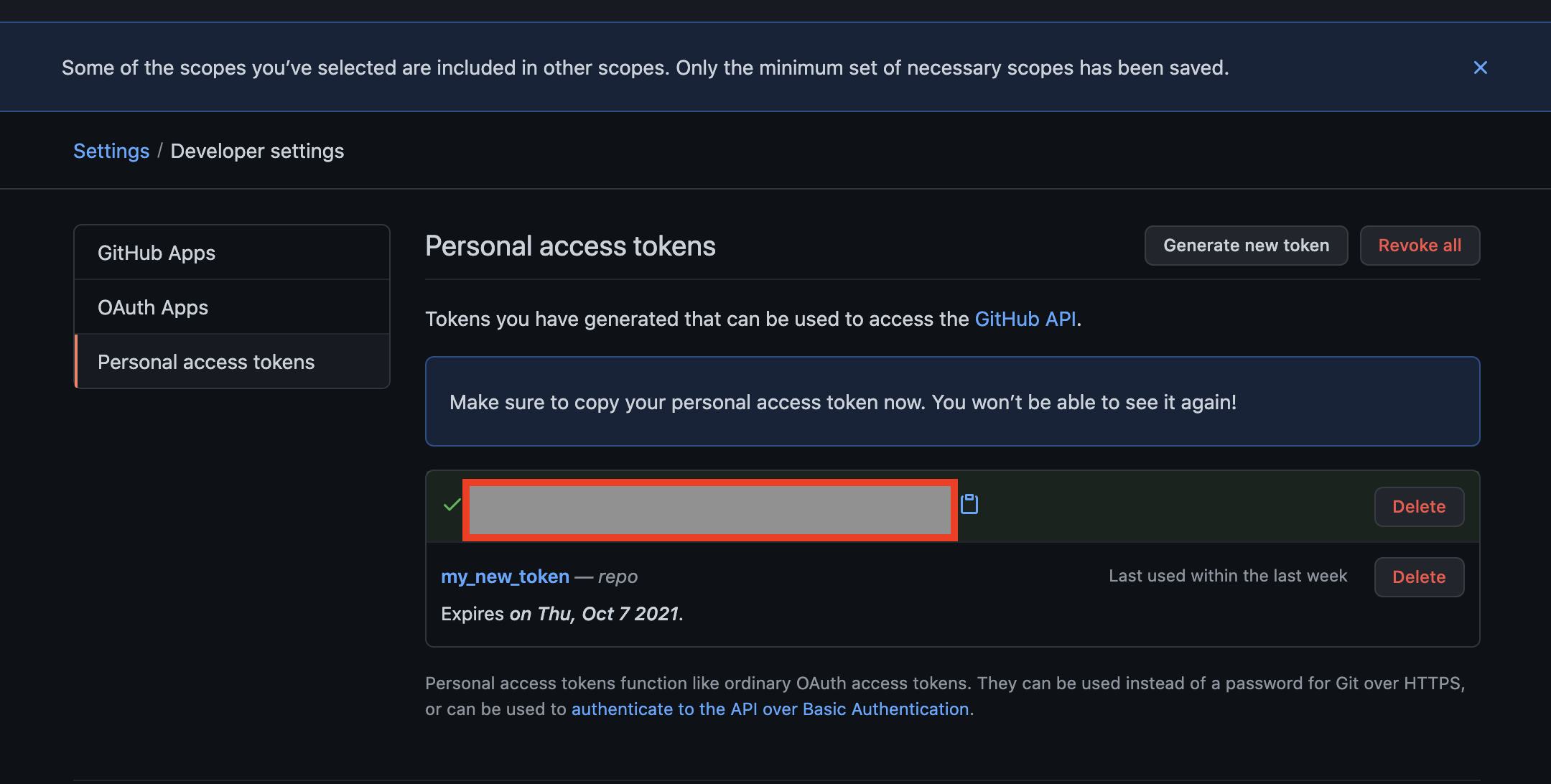 그림 5. Generate new token 클릭