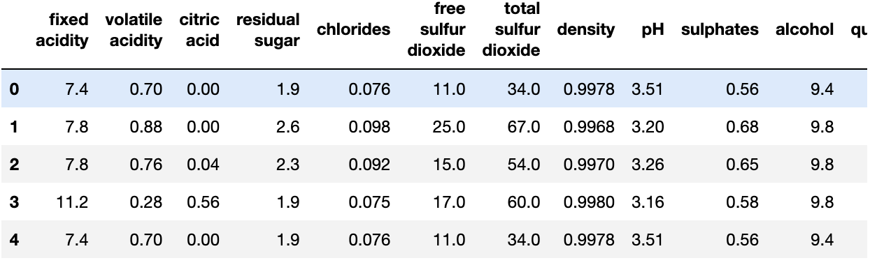 그림 2. 레드 와인 데이터 로드 확인