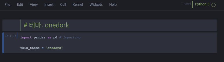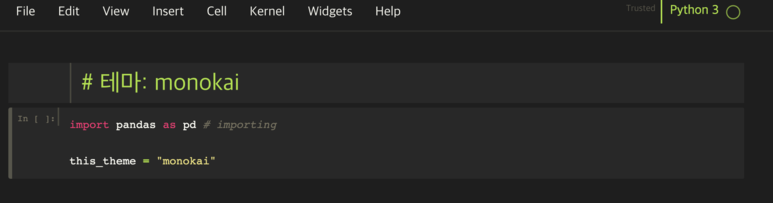 주피터 노트북 창을 새로고침 하시면 테마가 변경된 것을 확인하실 수 있습니다 :)