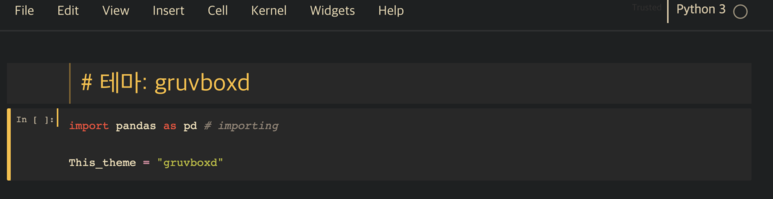 그래서 제가 테마별로 적용한 주피터 노트북 창 스크린샷을 준비해 봤습니다.