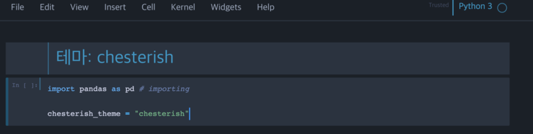 jt -t chesterish # 코드 입력 후 주피터 노트북 새로고침!