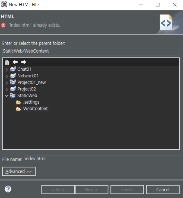 ํ์ผ๋ช ์ผ๋ก index.html์ ์ ๋ ฅํฉ๋๋ค.