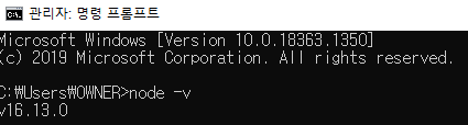 ๋ค์ cmd ์ฐฝ์ node-v๋ฅผ ์ ๋ ฅํด ๋ด ๋๋ค.
