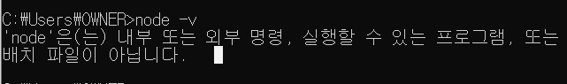 ์๋์ ๊ฐ์ ๋ฌธ์ฅ์ด ์ถ๋ ฅ๋๋ฉด NodeJS๊ฐ ์ค์น๋์ด ์์ง ์๋ค๋ ๊ฒ์ ๋๋ค.