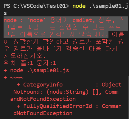 [์๋ฌ ํด๊ฒฐ] node : 'node' ์ฉ์ด๊ฐ cmdlet, ํจ์, ์ค ํฌ๋ฆฝํธ ํ์ผ ๋๋ ์คํํ ์ ์๋ ํ๋ก ๊ทธ๋จ ์ด๋ฆ์ผ๋ก ์ธ์๋์ง ์์ต๋๋ค.