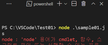 VS Code ํฐ๋ฏธ๋์์ node ๋ช ๋ น์ด๋ฅผ ํ์ฉํ์ฌ JavaScript ํ์ผ์ ์คํํ๋๋ ์๋ฌ๊ฐ ๋ฐ์ํ์ต๋๋ค.