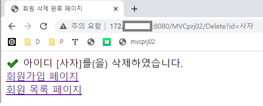 ์๋์ ๊ฐ์ด Delete.jsp ํ์ด์ง๋ก ์ ํ๋๋ฉฐ