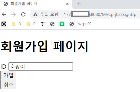 ๋ฉ์์ง ์ถ๋ ฅ ํ์ด์ง์ธ SignUpComplete.jsp๋ก ์ ๋์ด๊ฐ์ต๋๋ค.