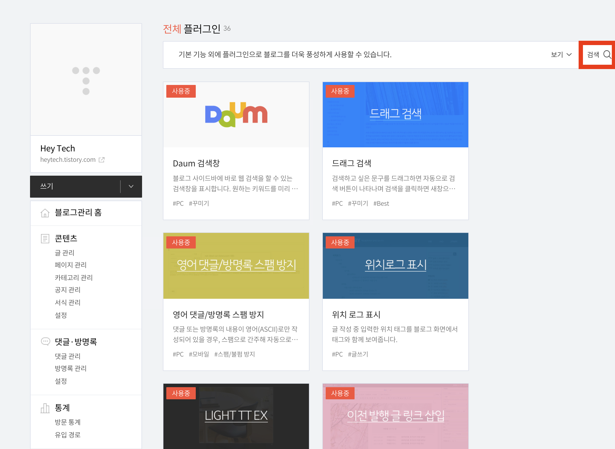 2. 좌측 메뉴바에서 "플러그인" 버튼 클릭