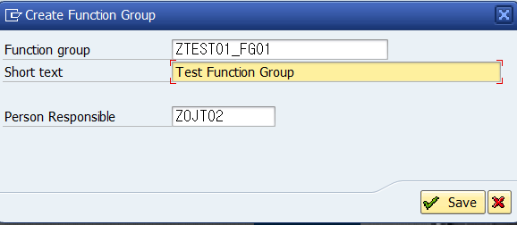 T-CODE SE80에서 패키지 이름 마우스 우측 클릭-Create-Function Group을 순차적으로 선택하여 Function Group 생성 창을 오픈합니다.