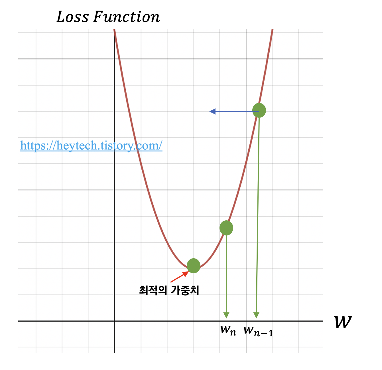 $$ w_{n} = w_{n-1} - \alpha \nabla f(w_{n-1}) $$