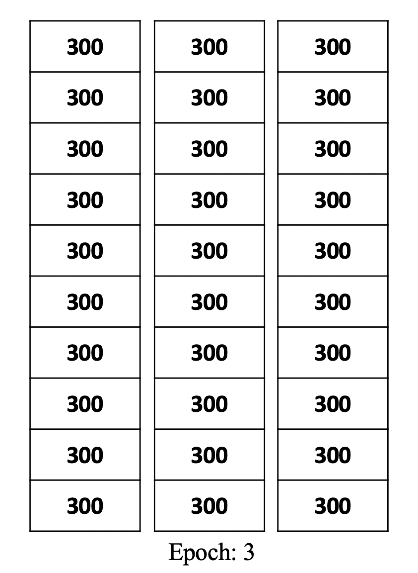 반면, 아래의 그림 4처럼, 전체 데이터셋 3회 활용하여 모델을 학습했다면 Epoch는 3입니다.