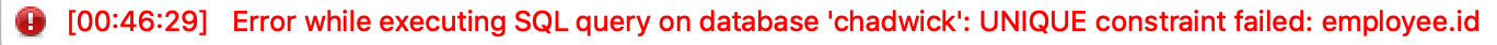 만일 위와 같이 테이블 내 프라이머리 키에 해당하는 데이터(id)가 존재함에도 불구하고 INSERT OR IGNORE INTO 구문을 작성하지 않고 INSERT INTO 구문을 통해 데이터 추가를 시도한다면 어떻게 될까요?