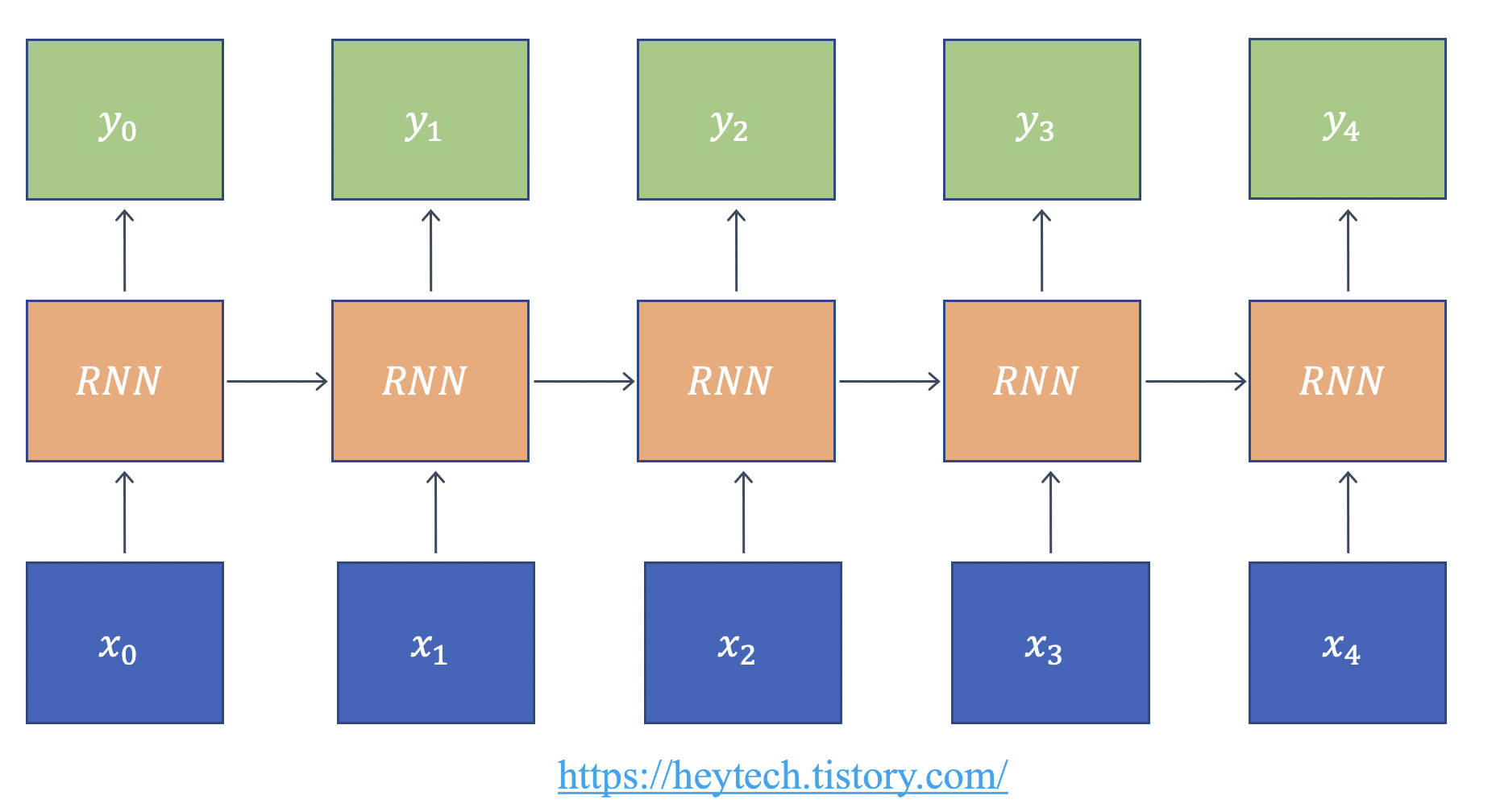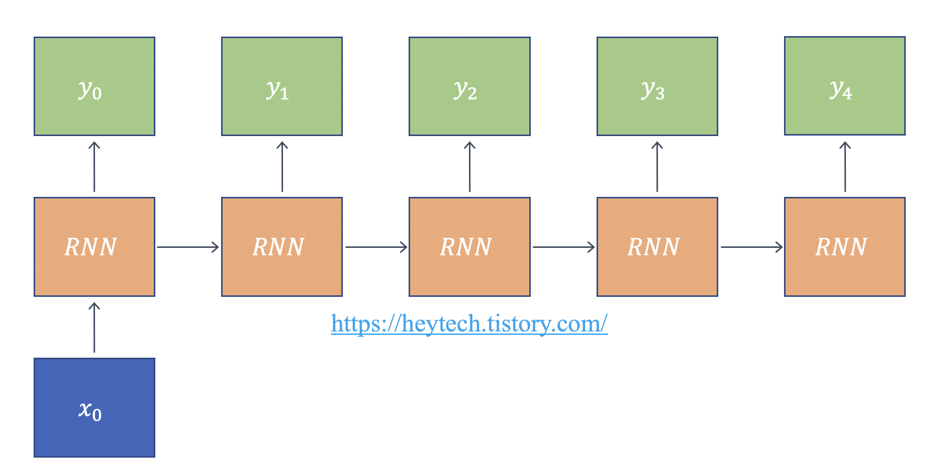 위의 그림 3은 RNN을 수식과 함께 도식화한 것입니다. RNN을 수식과 함께 동작 원리를 더 자세히 알아보겠습니다.