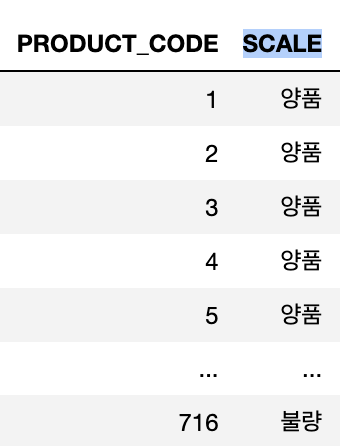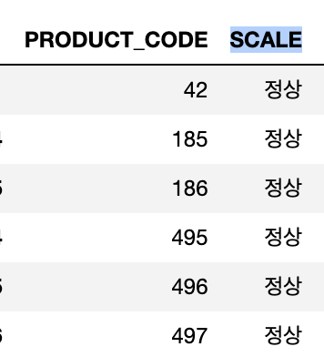 아래와 같은 데이터프레임이 있을 때, '정상'이라는 단어를 '양품'이라고 바꿔보겠습니다.