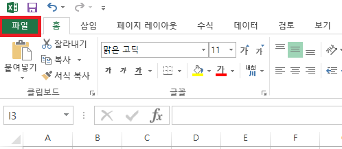 먼저, 새로운 엑셀 파일을 실행하고, 아래의 그림 4와 같이, 상단 메뉴바에서 "파일" 버튼을 클릭합니다.