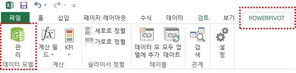 이제 아래의 그림 10과 같이, 'POWER PIVOT'이라는 새로운 탭이 생성됩니다. 해당 탭에서 '관리' 아이콘을 클릭해 주세요.