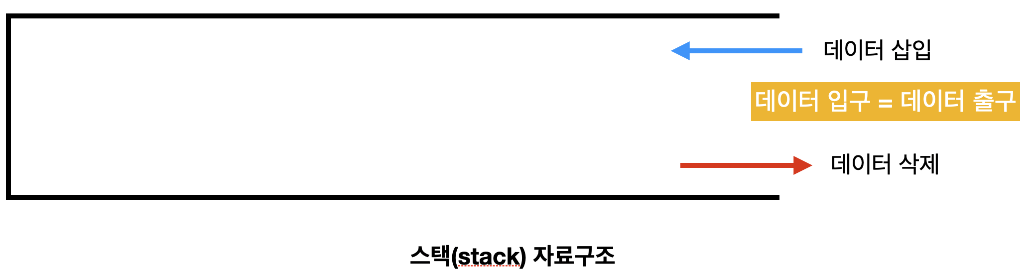 이제 스택 자료구조의 동작 방식을 살펴보겠습니다. 스택 자료구조는 그림 2 와 같이 입구와 출구가 동일한 형태로 표현됩니다.