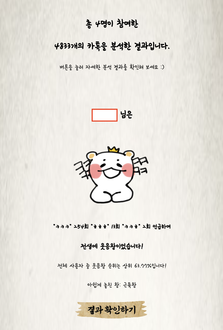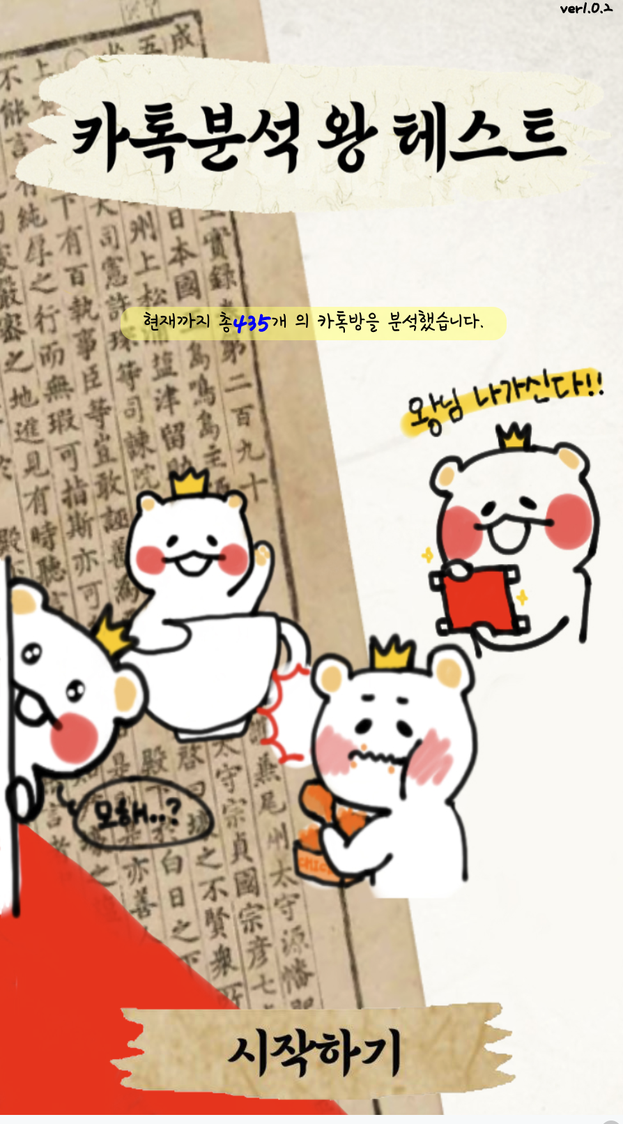본 포스팅에서는 직접 기획부터 개발까지 주도한 카톡 대화 분석 기반의 성격/취향/성향 분석 웹 서비스 '카톡분석 왕 테스트'를 소개합니다.