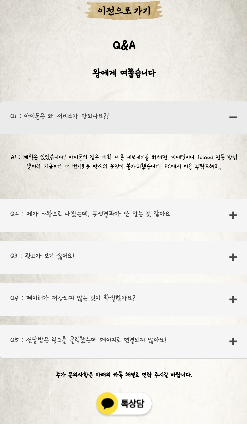 - 사용자 관점 예상 질문/답변, 카톡상담 링크