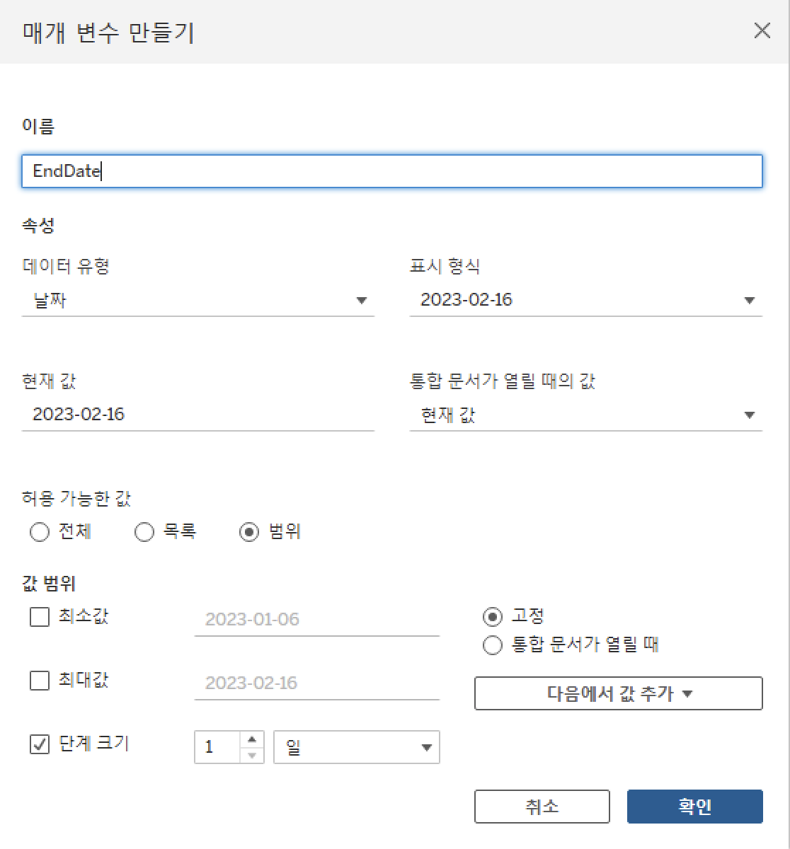 앞선 Step 1~5 과정을 거쳐 조회 종료일 매개변수도 생성합니다 (그림 6).