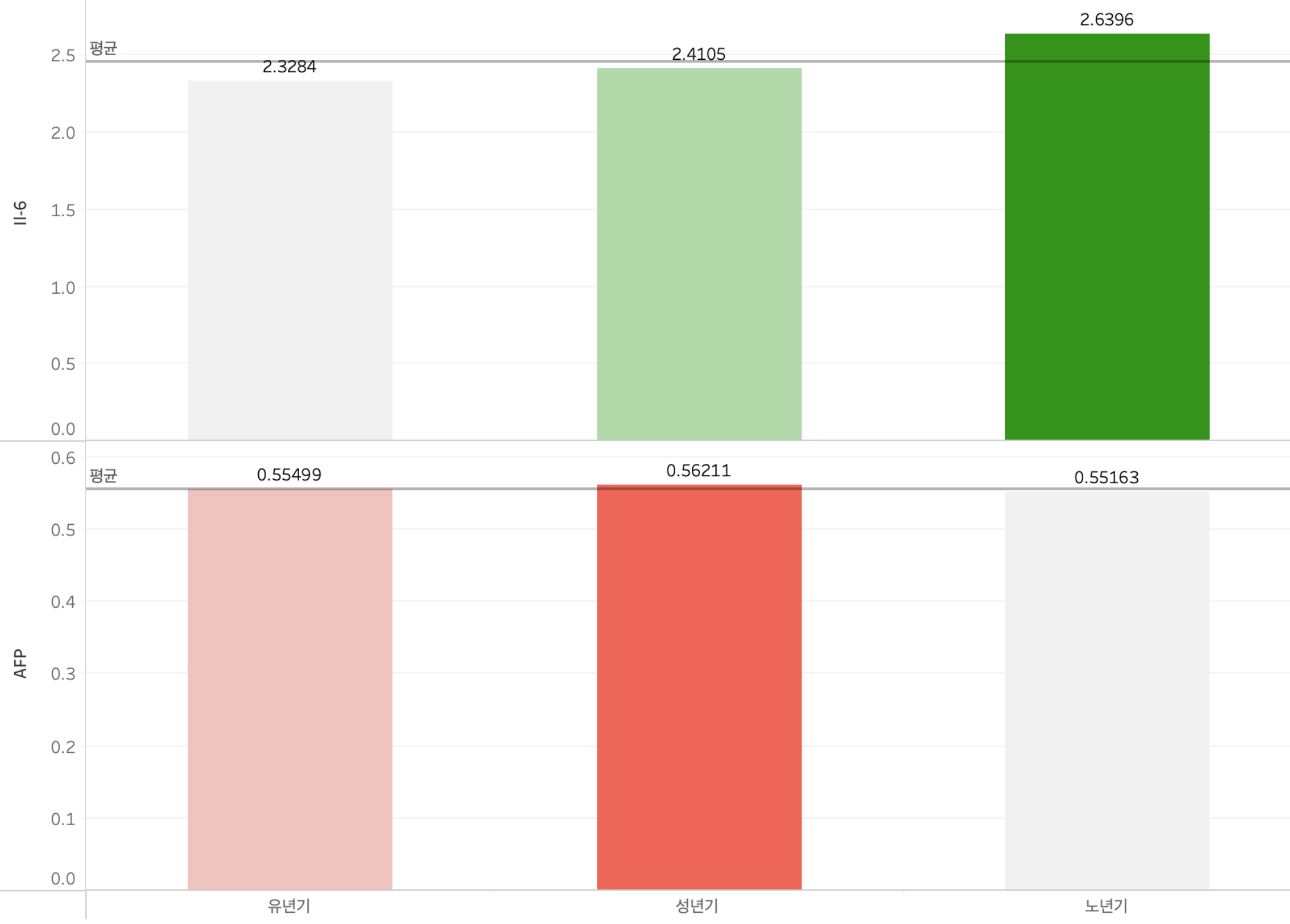 - AFP์ ์ฐ๋ น๋์ ๋ฐ๋ฅธ ์ฐจ์ด๋ ANOVA๊ฒ์ ์ํ์ p-value๊ฐ์ด 0.6์ผ๋ก ์ฐจ์ด๊ฐ ์์์ ๊ฒ์ฆํ์๋ค.