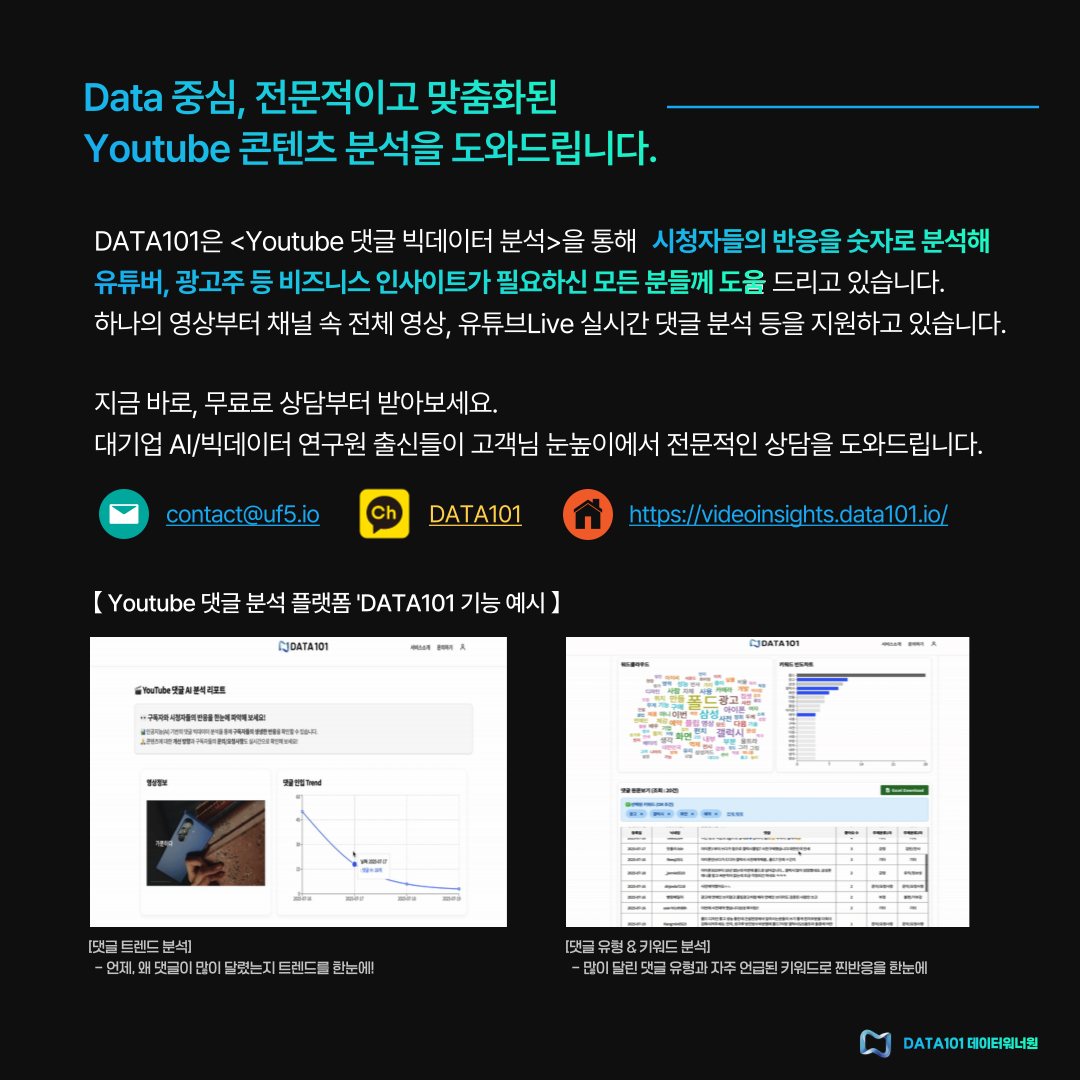 π Youtube μ½ν μΈ λ§λ€ ꡬλ μλ€μ μ° λ°μμ λκΈ λΉ λ°μ΄ν° λΆμμ ν΅ν΄ νμΈν΄ 보μΈμ!