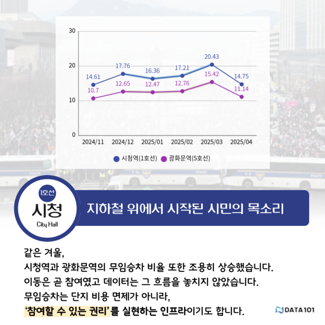 ๐ ์์ธ ์งํ์ฒ ๋ฌด์์น์ฐจ Data ๊ธฐ๋ฐ ์๋ฏผ์ฐธ์ฌ, ์ด๋, ์ํ ํจํด ๋ถ์ (๋ฐ์ดํฐ๋ถ์์ฌ๋กzip #3) ๋ณธ๋ฌธ