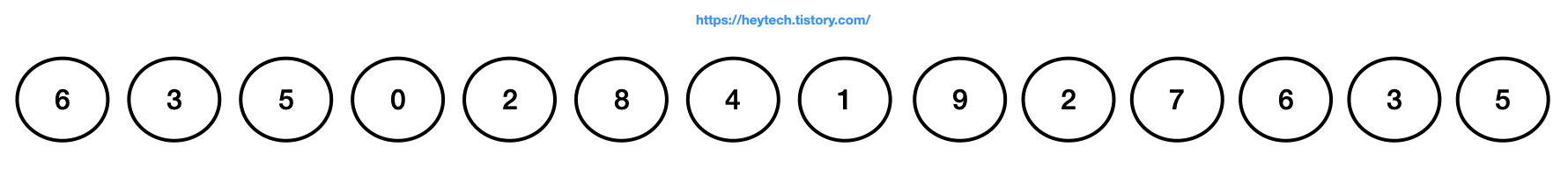 그림 1.  0부터 9까지 중복을 포함한 데이터로 구성된 리스트 예시