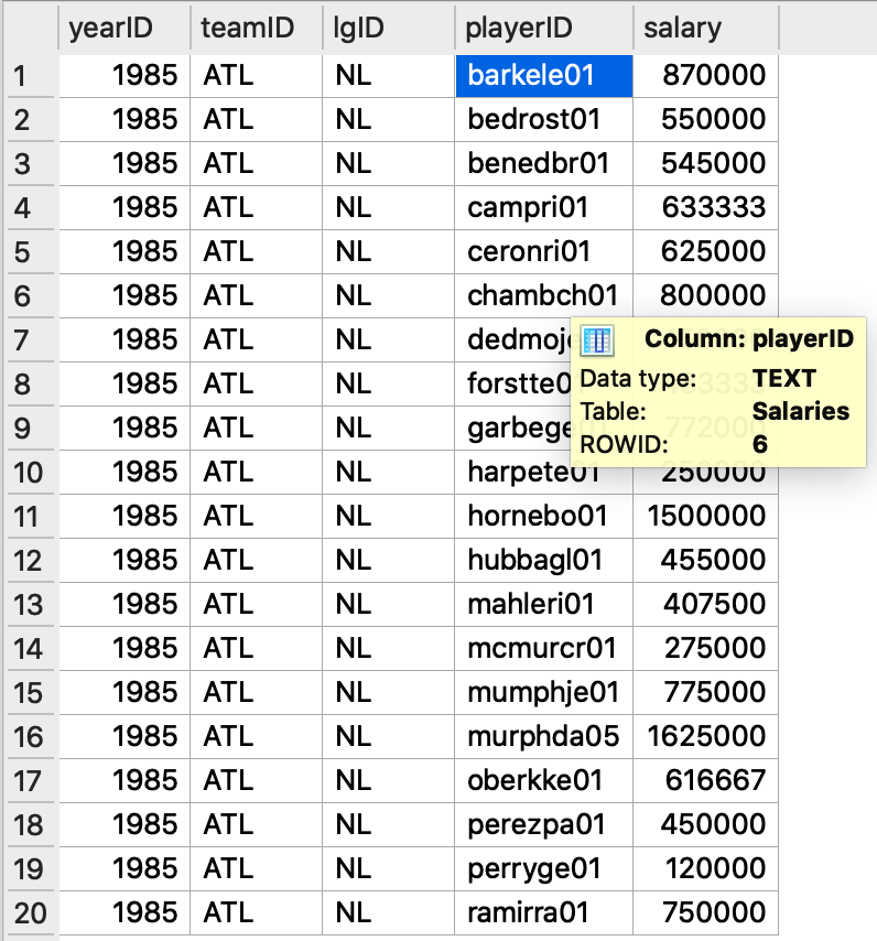 Salaries라는 야구선수 연봉정보가 담긴 테이블을 가져와보겠습니다.
