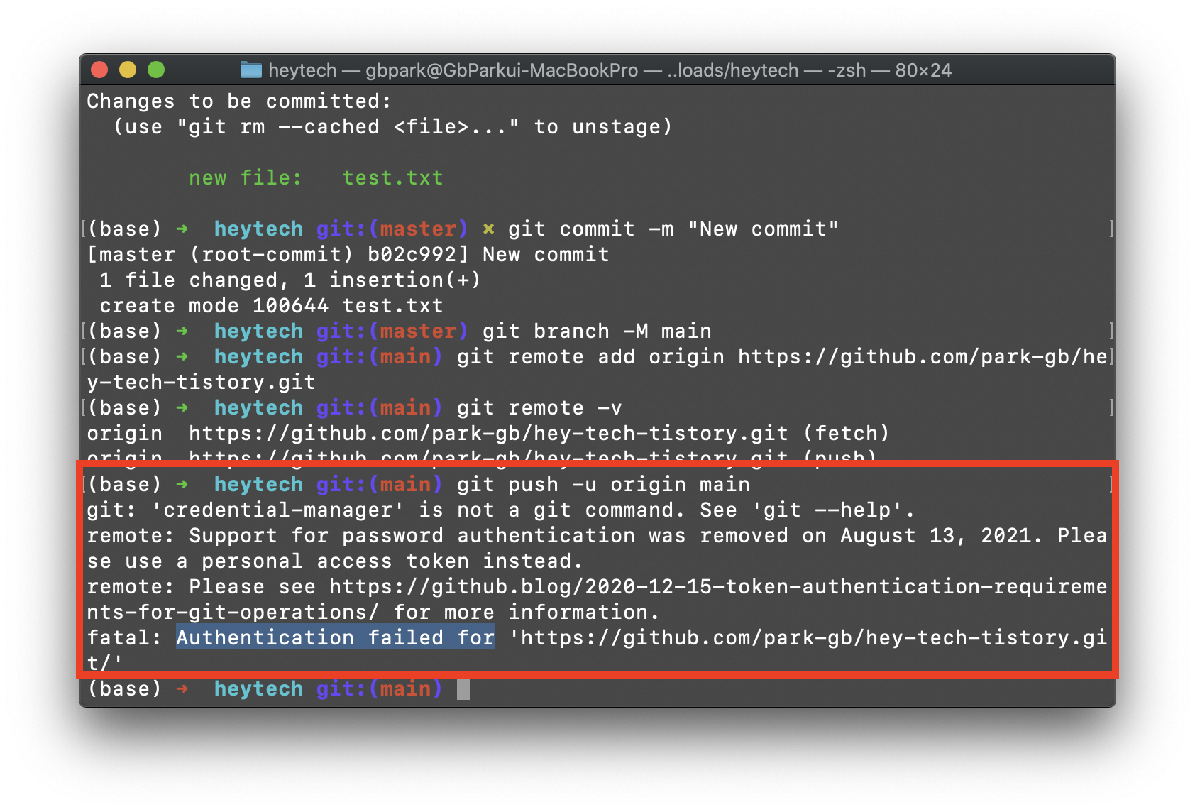 fatal: Authentication failed for 'https://github.com/park-gb/hey-tech-tistory.git/'
