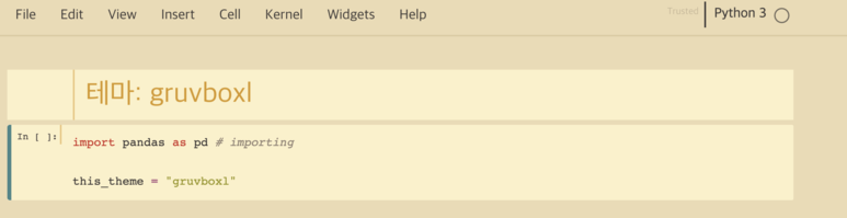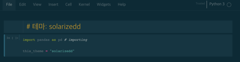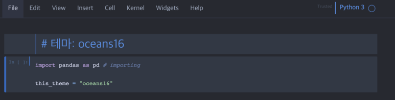 그래서 제가 테마별로 적용한 주피터 노트북 창 스크린샷을 준비해 봤습니다.