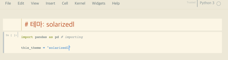 주피터 노트북 창을 새로고침 하시면 테마가 변경된 것을 확인하실 수 있습니다 :)