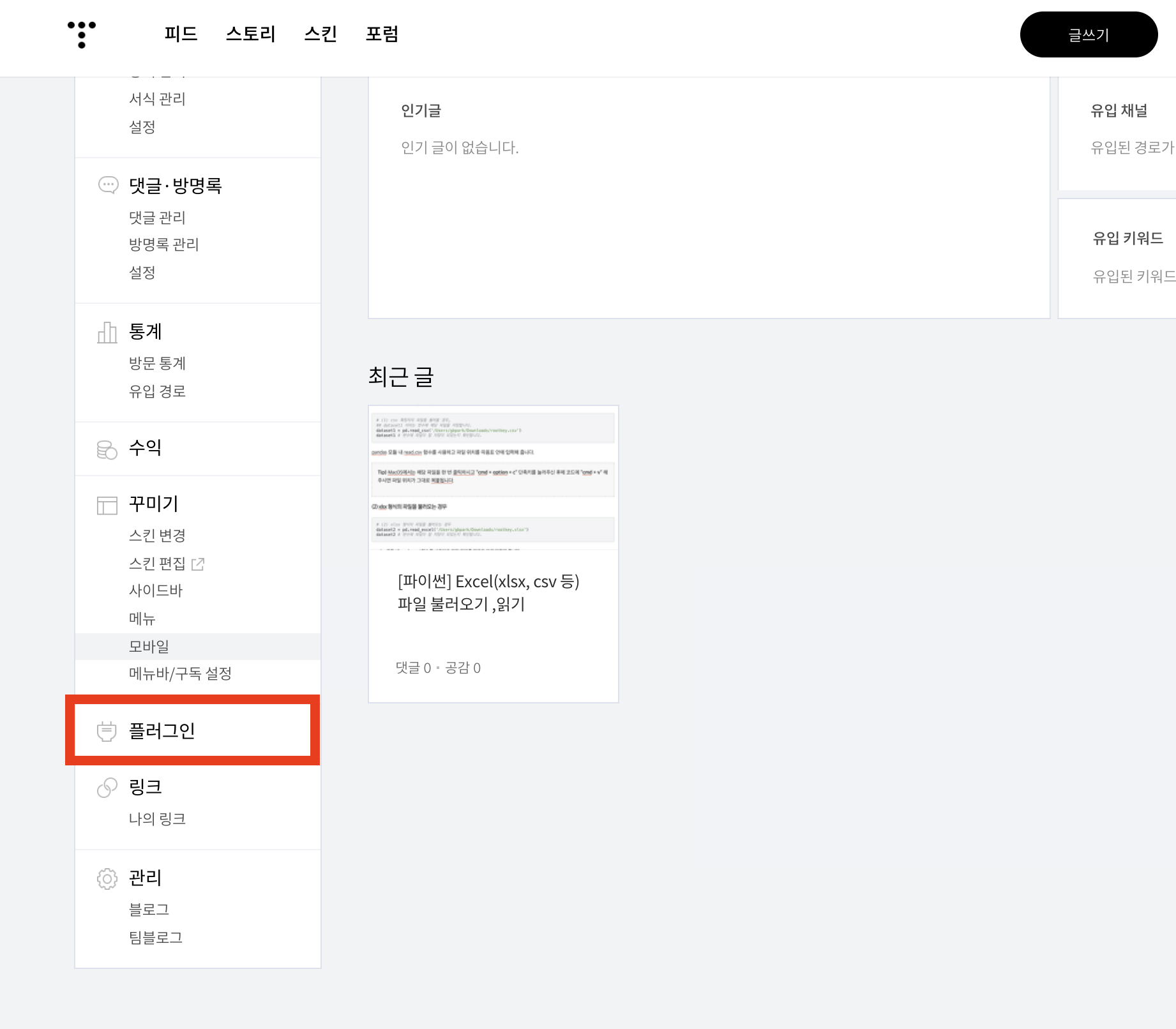 2. 좌측 메뉴바에서 "플러그인" 버튼 클릭