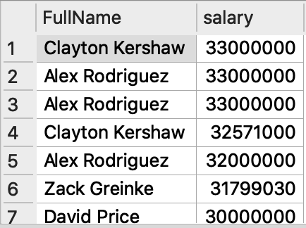위와 같이 선수 Full Name별로 연봉정보가 출력된 것을 확인하실 수 있습니다.