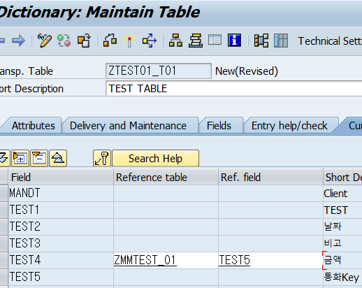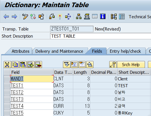 | 5 | Data Type | 필드의 기술적 속성 정의(직접 입력 가능, e.g., CURR, DATS) |