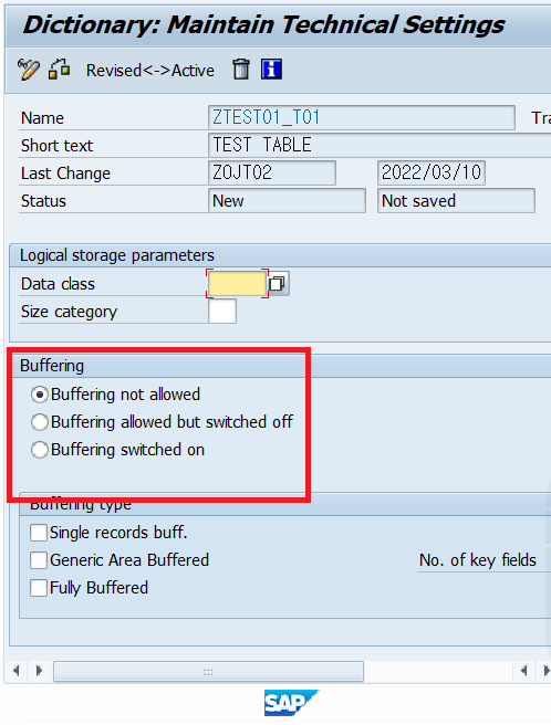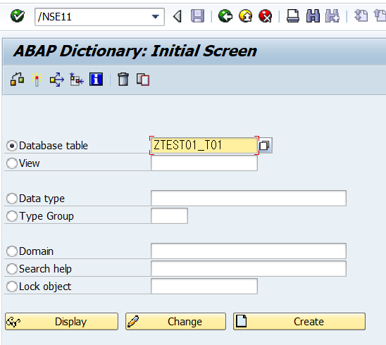 T-CODE SE11에서 테이블을 생성합니다. Database table을 선택하고 생성할 테이블 이름을 입력합니다.