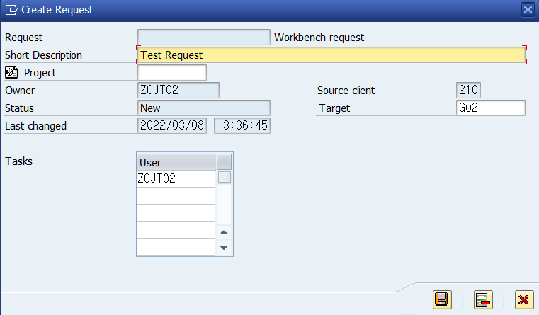패키지를 CTS에 할당합니다. Request 항목 우측에 흰색 도화지 아이콘을 클릭합니다.