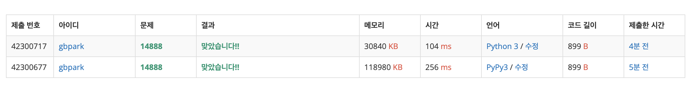 채점 결과, PyPy3와 Python3 모두에서 패스했습니다. 복잡한 연산은 없기 때문에 PyPy3보다 Python3가 더욱 빠르게 연산했네요 :)