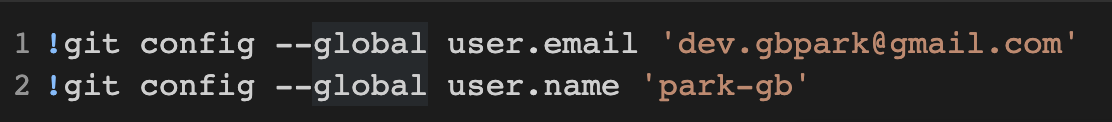 !git config --global user.email 'Github ์ด๋ฉ์ผ'