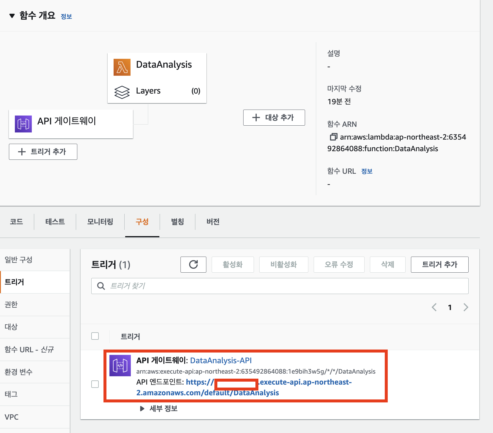 ์ด์ Lambda ์ฝ์๋ก ๋์์ค๋ฉด ๊ทธ๋ฆผ 9์ ๊ฐ์ด API ๊ฒ์ดํธ์จ์ด๊ฐ ํธ๋ฆฌ๊ฑฐ๋ก์จ ์ถ๊ฐ๋ ๊ฒ์ ํ์ธํ ์ ์์ต๋๋ค. ์ฌ๊ธฐ์ API ์๋ํฌ์ธํธ๊ฐ Lambda์ ์ฃผ์๊ฐ ๋ฉ๋๋ค.