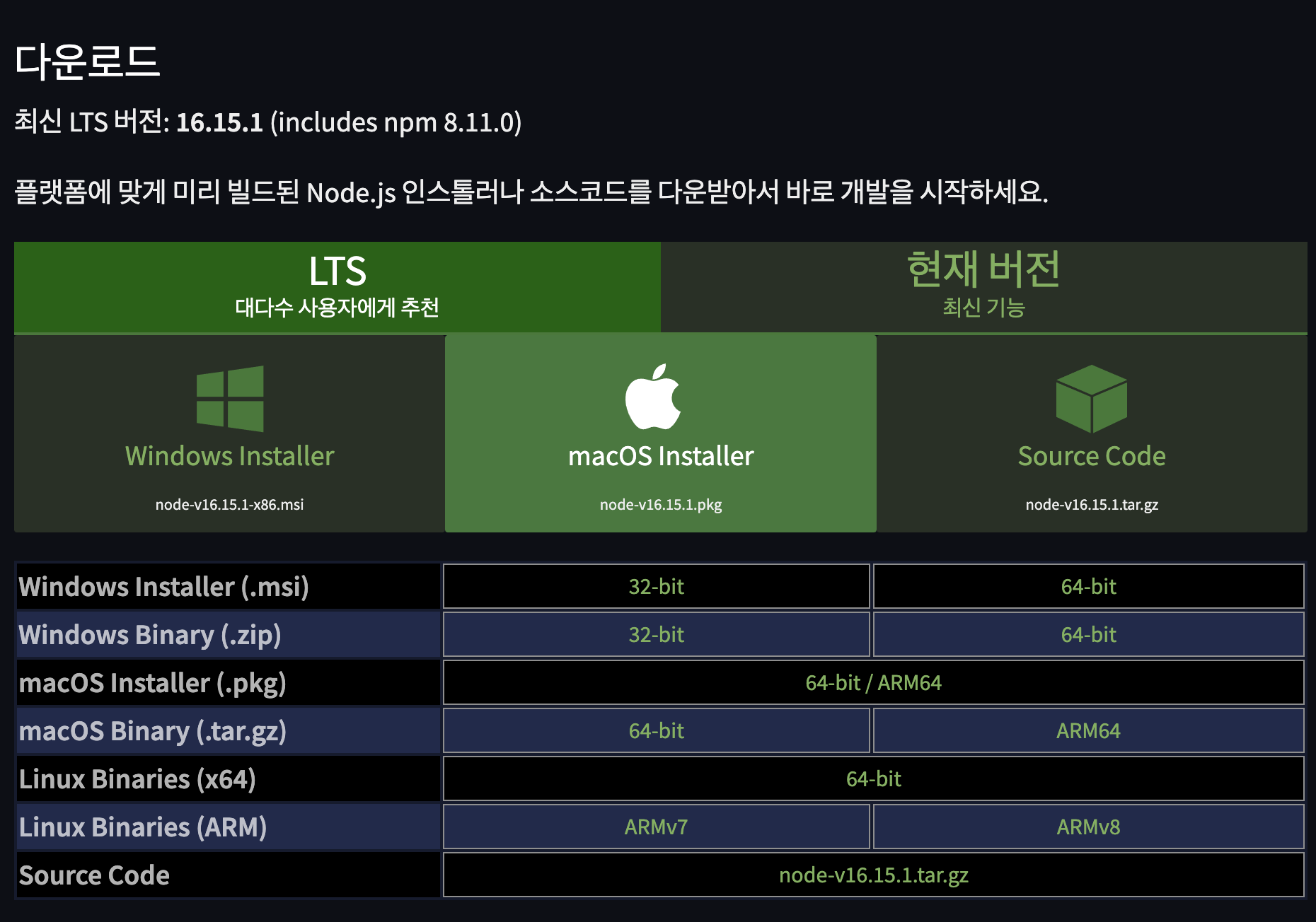 https://nodejs.org/ko/download/