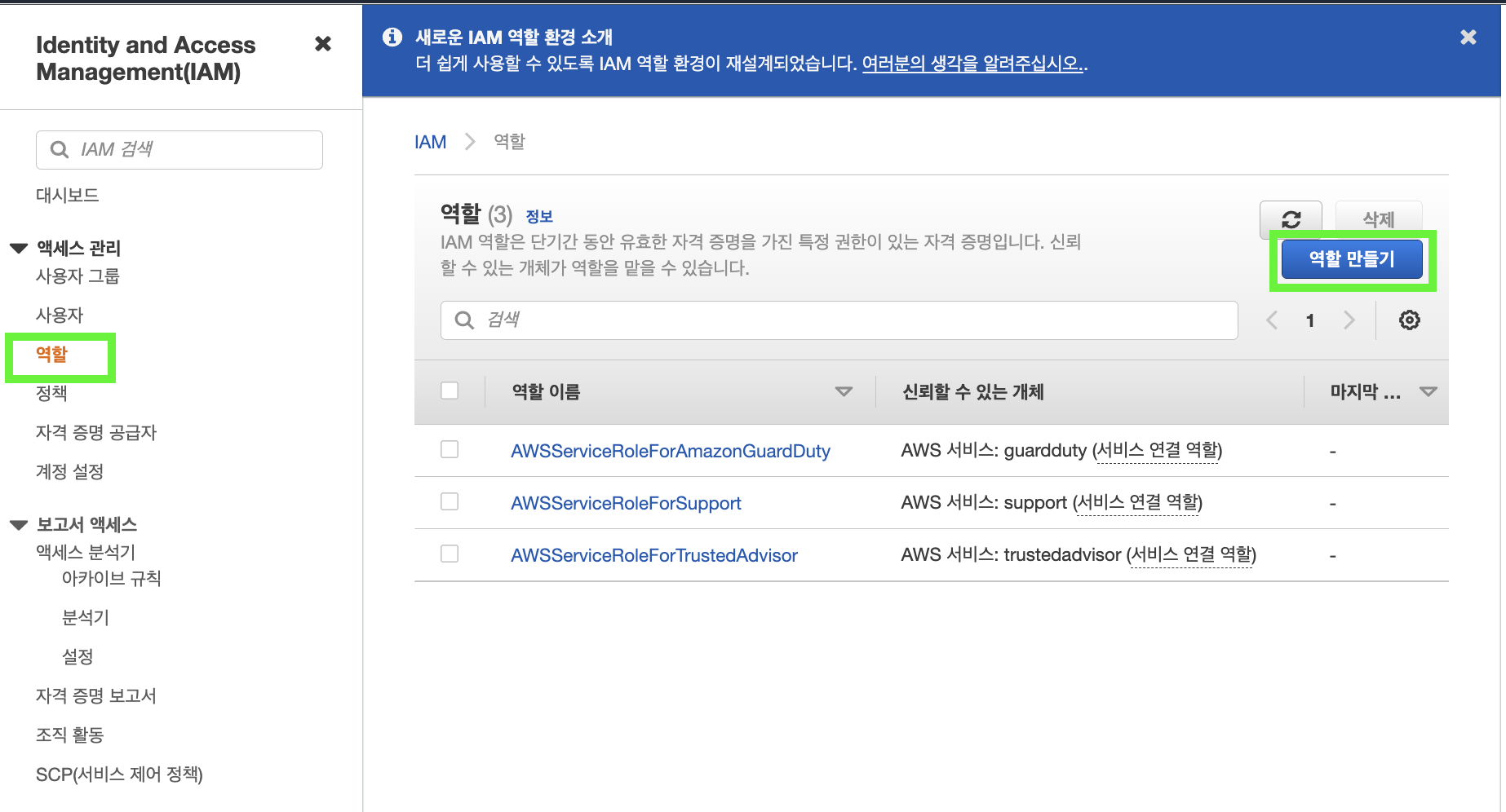 ์ข์ธก์ "์ญํ " ํ ์คํธ๋ฅผ ํด๋ฆญํ์ ํ, ์ฐ์ธก์ "์ญํ ๋ง๋ค๊ธฐ" ๋ฒํผ์ ๋๋ฌ์ฃผ์ธ์(๊ทธ๋ฆผ 4).