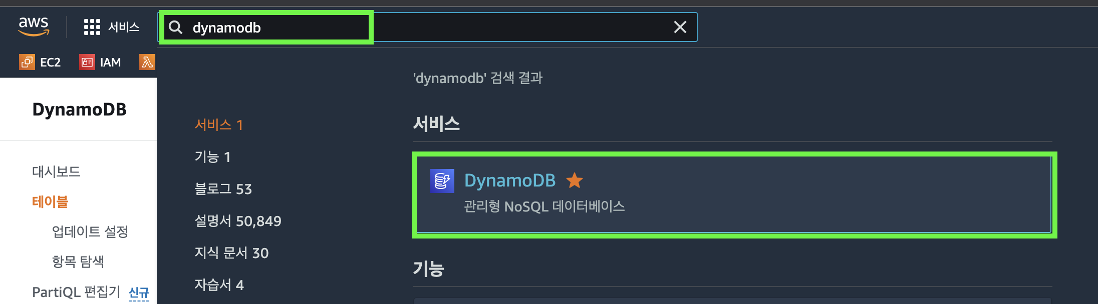 AWS ๊ฒ์์ฐฝ์ DynamoDB๋ฅผ ๊ฒ์ํ์ ์ ์ฝ์์ ์ ๊ทผํฉ๋๋ค(๊ทธ๋ฆผ 1).