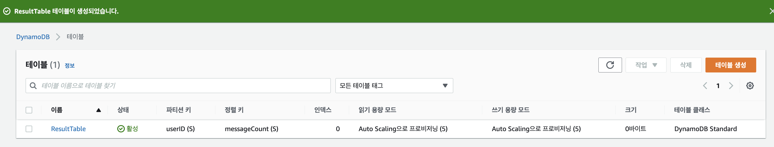 1.2. DynamoDB ํ ์ด๋ธ ์์ฑ