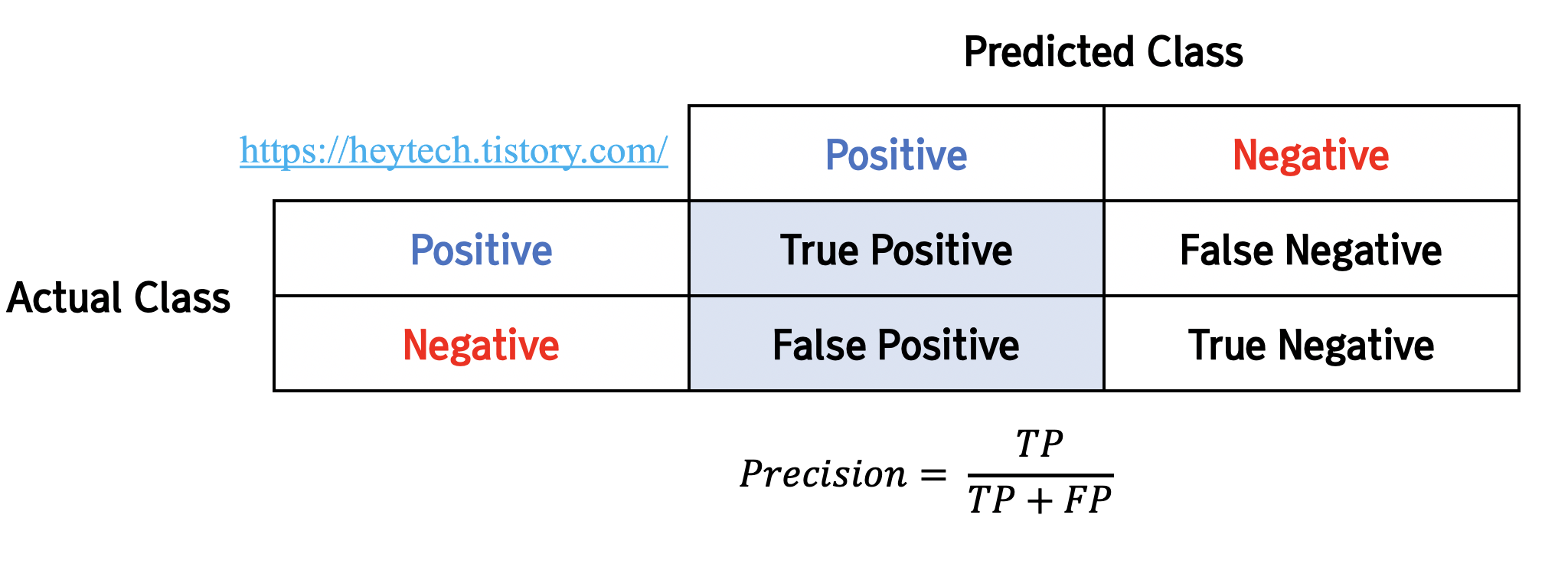 - Precision 값이 클수록 모델 성능이 우수하다고 평가