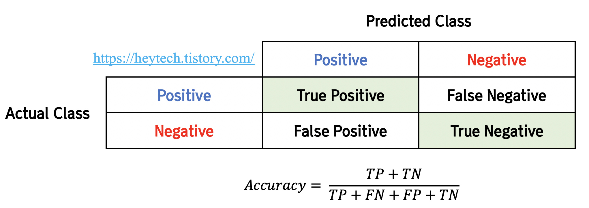 - Accuracy 값이 클수록 모델 성능이 우수하다고 평가