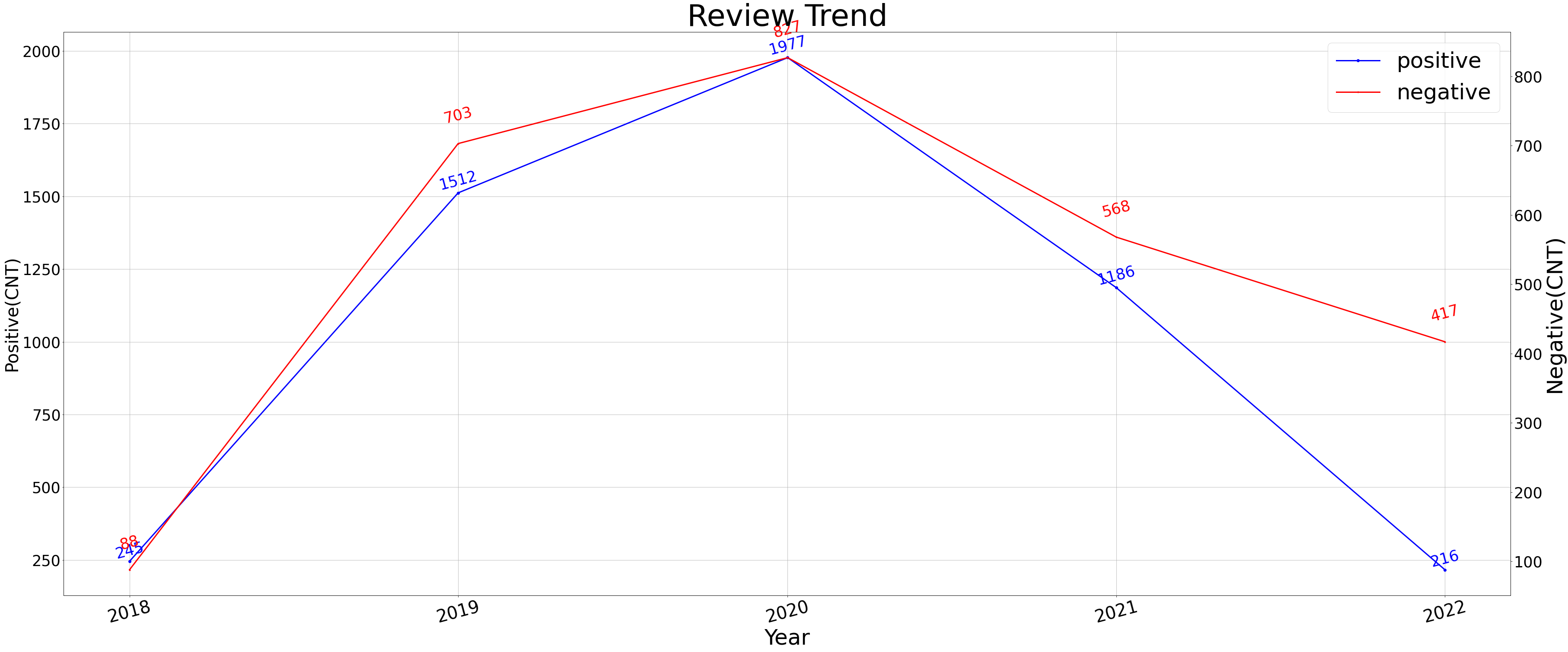 plt.title('Review Trend', fontsize = 70) # 그래프 제목