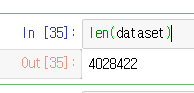 아래 그림 2와 같이, 파이썬(Python)으로 데이터 건수를 확인해 보면 4백 만여 건입니다.