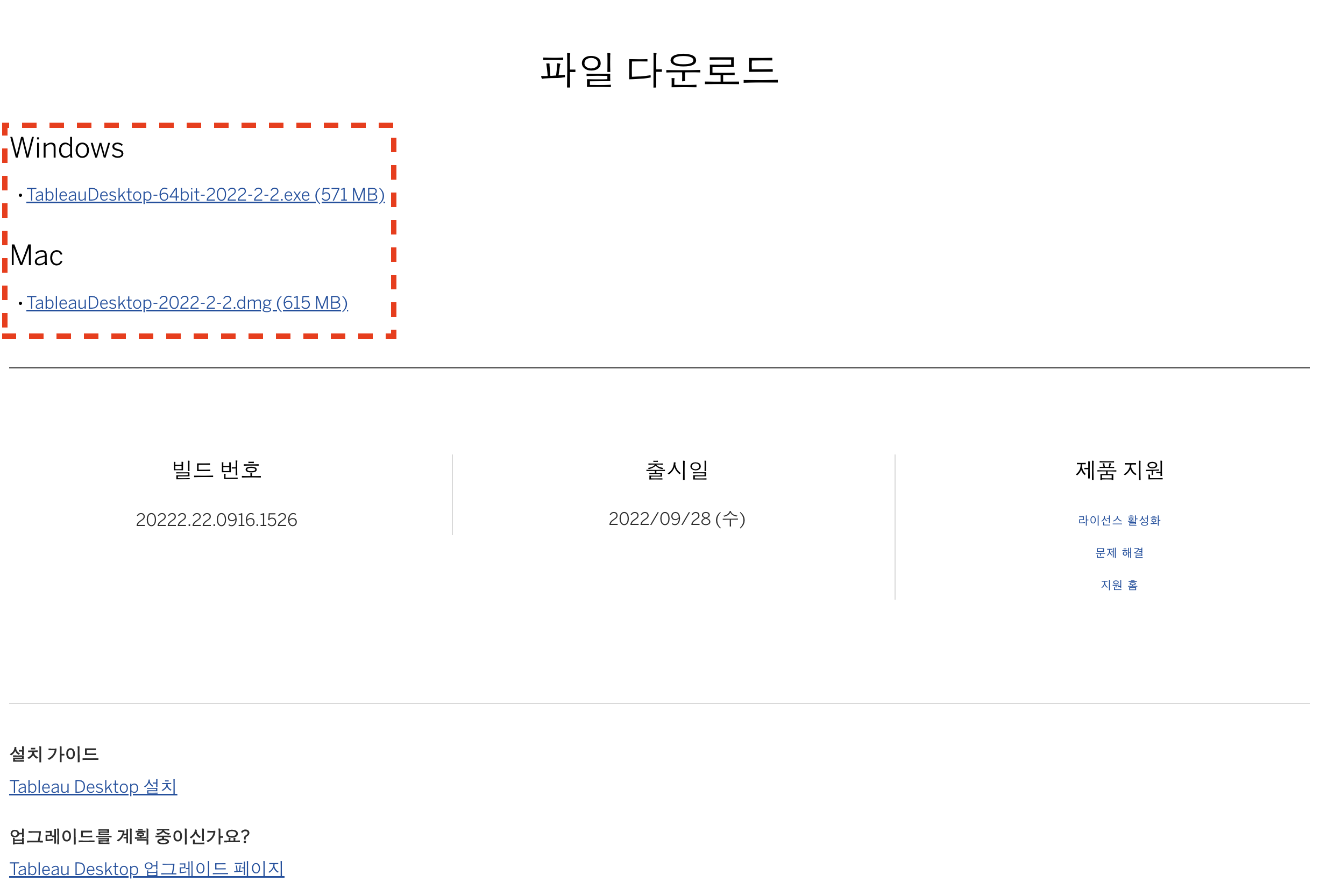 제품 다운로드 및 릴리스 정보 Tableau Desktop